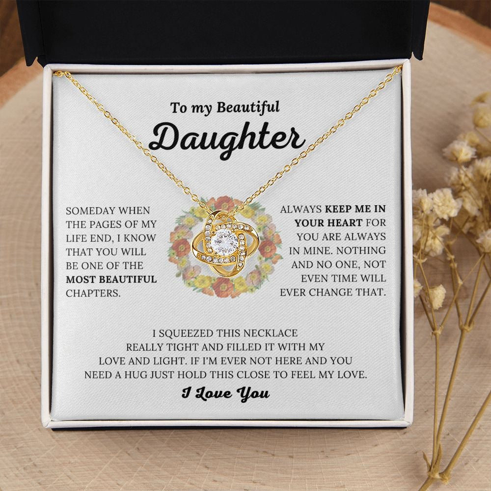 TO MY DAUGHTER FROM MOM and FROM DAD "Keep Me In Your Heart" - Premium Love Knot Necklace