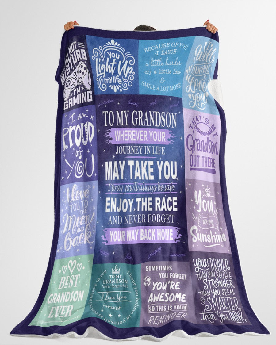 BLANKET FOR GRANDSON – COMFORT & WARMTH GIFT FROM GRANDPARENTS Sherpa Fleece Quilt Blanket NTTD00 (SKUB11-BLK-02)